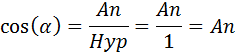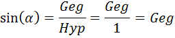 Der Radius des gezeichneten Kreises ist 1. Jede Position des Uhrzeigers bzw. der Pfeiles können wir durch ein rechtwinkliges Dreieck analysieren. Das Besondere beim Radius 1 ist, dass die Hypotenuse gerade 1 ist. Daher vereinfacht sich die Berechnung der Verhältnisse für Sinus und Cosinus: