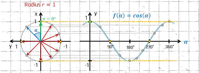 Durch diese Drehung erhalten wir den gleichen Kreis, wie für den Sinus: