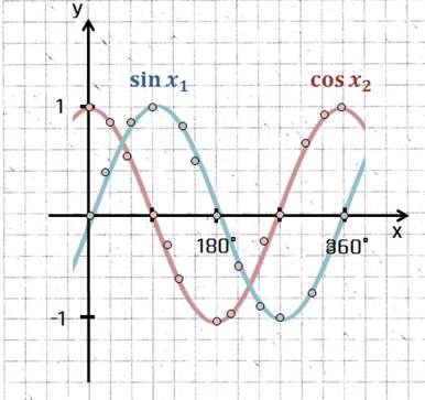 Die Drehung sehr Ihr in der Verschiebung der Funktionen. Der Kosinus hat die gleiche Form wie ein Sinus, der um 90° später startet und damit um 90° nach links verschoben ist.