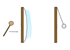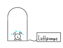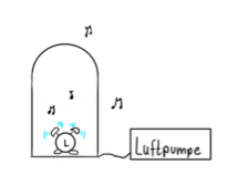 Wir stellen einen klingelnden, mechanischen Wecker in eine Vakuumglocke. Wir hören deutlich das Geräusch. Schalten wir nun die Pumpe an, die die Luft aus der Glocke pumpt, so wird das Geräusch immer leiser, bis es schließlich ganz verschwindet. Wir sehen aber, dass der mechanische Wecker sich noch bewegt und daher noch klingelt. Schalten wir die Pumpe ab und lassen die Luft wieder hinein, so wird das Klingeln wieder hörbar.
