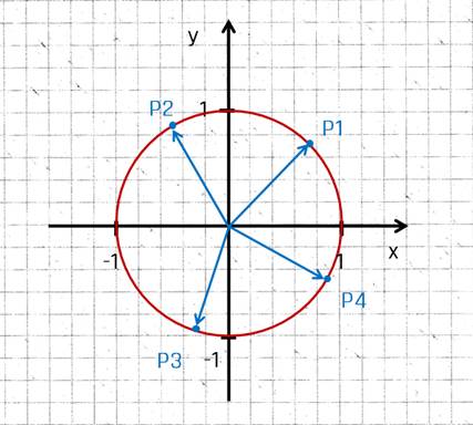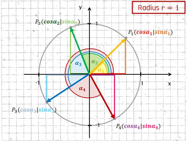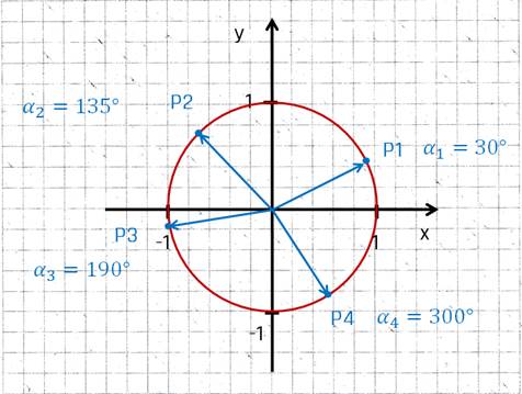 Koordinaten der Punkte auf dem Kreis angeben. Für einen Winkel