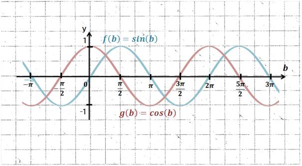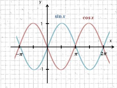 Damit können wir die Beschriftung unserer x-Achse von Grad auf Bogenmaß ändern. Die Form der Sinus- und Kosinusfunktion bleibt dabei gleich: