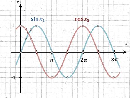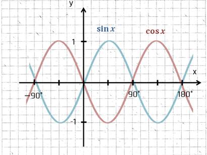 Die Drehung sehr Ihr in der Verschiebung der Funktionen. Der Kosinus hat die gleiche Form wie ein Sinus, der um 90° später startet und damit um 90° nach links verschoben ist.