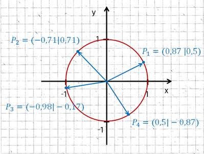 Koordinatenberechnung auf dem Einheitskreis: